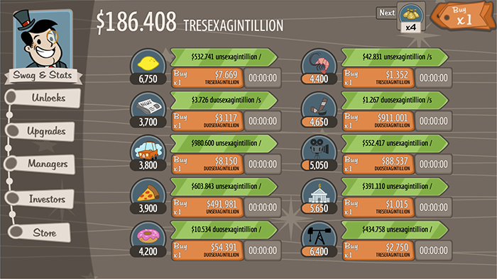 .Auch auf Kongregate, einer beliebten Plattform für kostenlose webbasierte Games (analog dem Internetklassiker Newgrounds) hat das Genre Idle Games einen Aufschwung erfahren. Unter dem Tag „IDLE“ finden sich über tausend Spiele. Eines der Spiele das dort seinen Ursprung fand ist Adventure Capitalist. Seit dem 30. März findet sich dieses nun auch gratis auf Steam, komplett mit Achievements was ich natürlich prompt zum Anlass nahm erneut darin zu versinken.