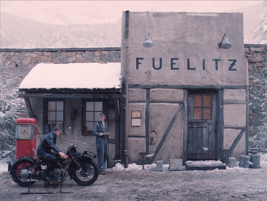 The fueling station appropriately is called FUELITZ, because the fictitious country the movie plays in clearly has been influenced by real-world Germany
